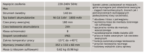 • Wyposażona również w przycisk testu ręcznego. Energooszczędne, niewymienne źródło światła LED i akumulator o pojemności 1800 mAh pozwalają na 3 godzinną pracę w trybie awaryjnym.