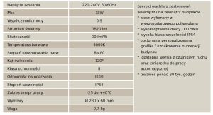 * dostępna wersja z czujnikiem ruchu oraz zmierzchu do pracy automatycznej