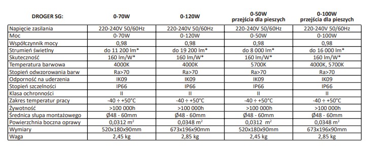 UWAGA: W wiadomości prosimy o określenie mocy oprawy do prawidłowych ustawień przed wysyłką (do 70W).