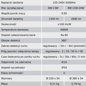 - oprawy oraz parametrów czujnika ruchu i zmierzchu (opcjonalny pilot)