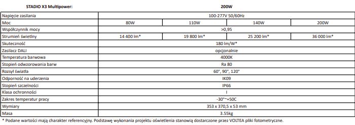 projektor LED STADIO X3 400W 4000K 60st Multipower - czyli możliwość zmiany mocy, Ra80, IK09